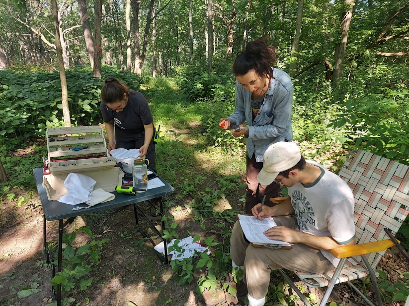 Happy Hill Woodland: Another site located within a large oak woodland managed by The Nature Conservancy, the Happy Hill Woodland banding site was established in 2021. Located within Baxter’s Hollow Preserve, one of the most extensive forests in southern Wisconsin, this site is at the top of a flat quartzite blufftop in an oak-hickory woodland. The most abundant birds banded here are American Redstart, Rose-breasted Grosbeak, and Eastern Wood-Pewee, and 26 species have been banded to date.