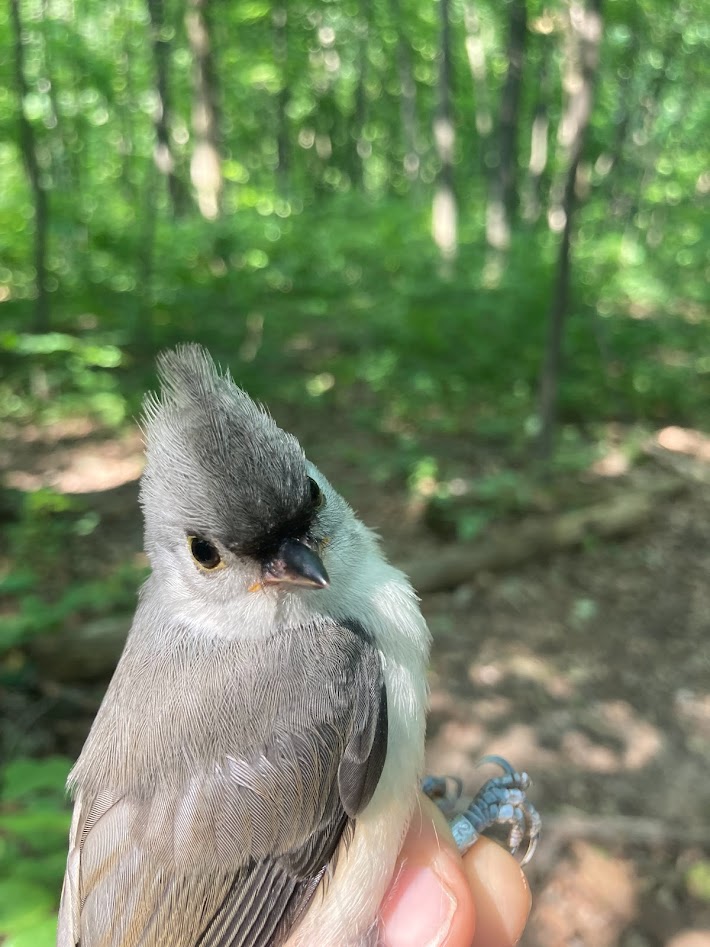 Hemlock Draw Uplands: This site was established in 2021 within one of The Nature Conservancy’s woodland restoration sites. Characterized by a steep south-facing sandstone bluff, mature white and red oak trees, and a recovering herbaceous ground layer, this site is approaching open woodland conditions after decades of fire suppression. The most abundant bird species encountered during MAPS operations are Indigo Bunting, Eastern Wood-Pewee, and American Redstart, and a total of 27 bird species have been banded, indicating that bird diversity is higher here than any of our other sites.
