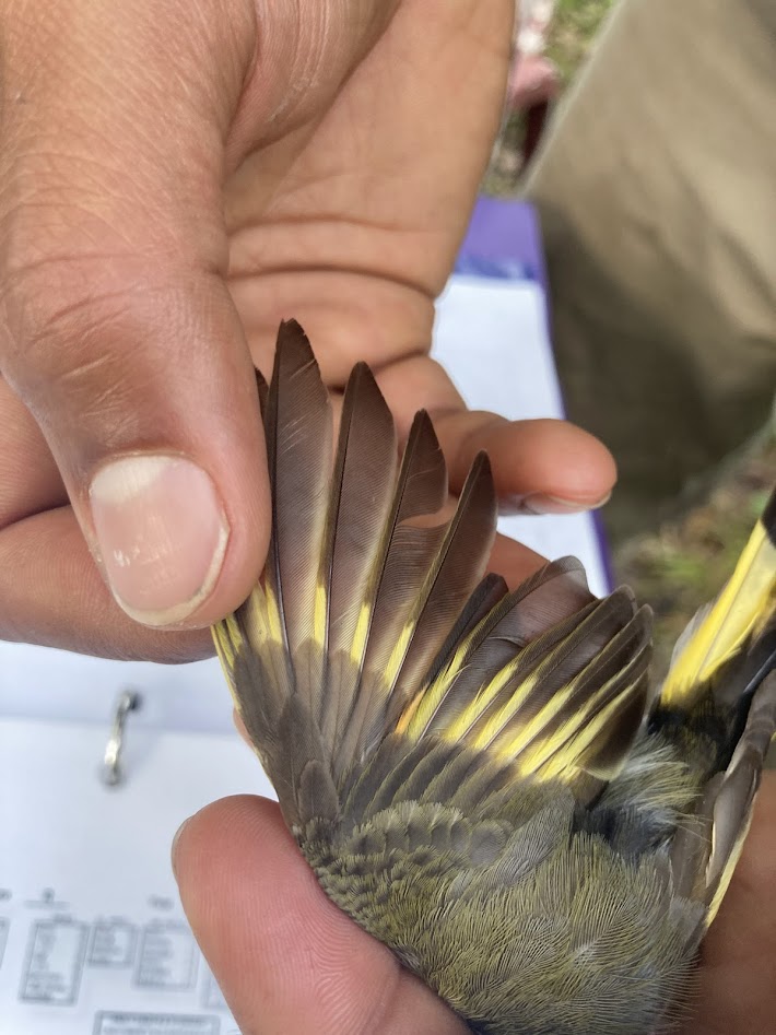 This site also has the record for the oldest individual bird in our study area – a Mourning Warbler, banded in the site as an adult (at least two years old) in 2021 and recaptured in 2025. For a 13 gram bird which migrates to Central or South America each year, surviving for six years is impressive! The oldest Mourning Warbler ever recorded was seven years old.